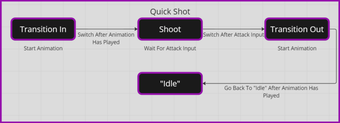 I am always looking for ways to improve my character controllers to give as satisfying of a result as possible. In this project I decided to experiment with a heavily homebrewed version of a statemachine for the weapon controller. Each ability is built up by multiple states that lay in execution order in a list so that the currently running state will tell the controller when it wants to advance in the chain.