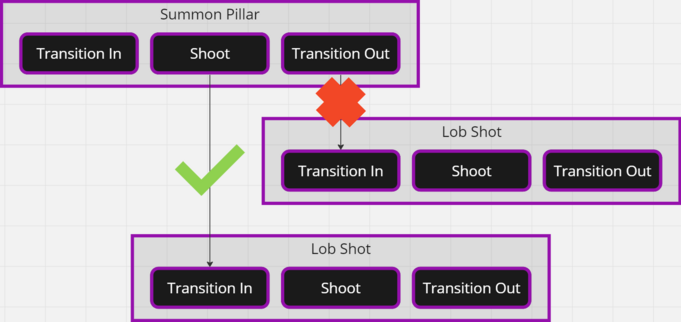 Each state in a chain has a priority level to decide whether you are allowed to switch to a new state-chain. Since each state in a chain holds its own priority, you can easily set when each state-chain can interrupt the current one to perform animation cancels or similar strategies.